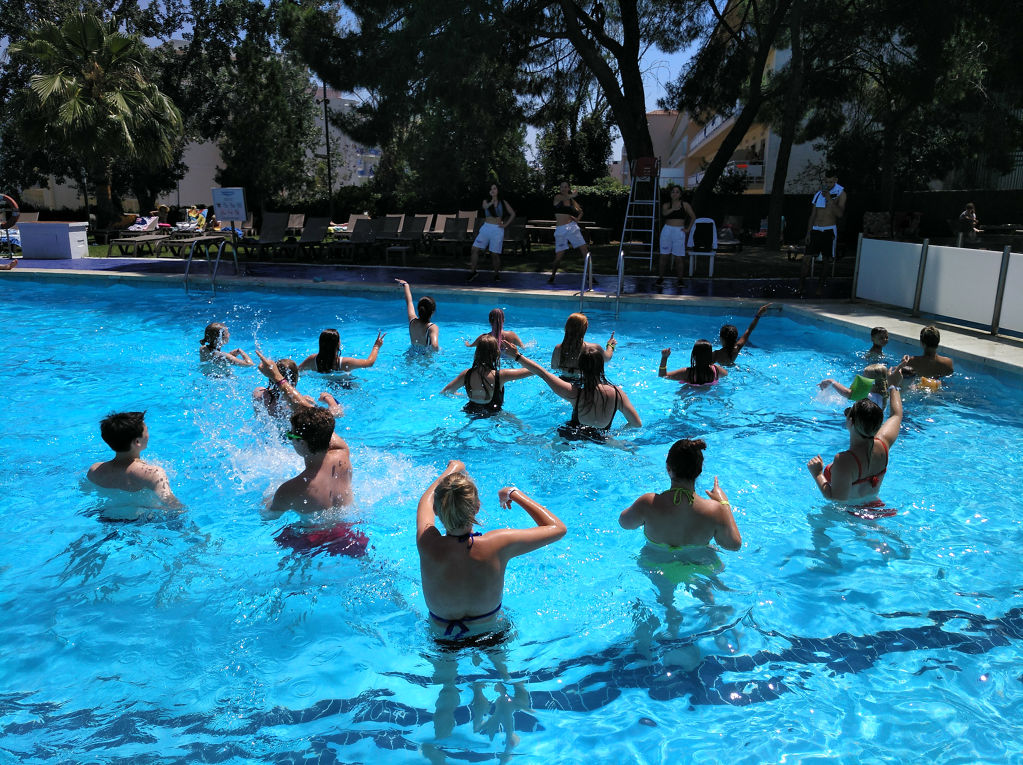 Im Hotel Samba erwartet euch ein weitläufiger Außenpool mit großer Sonnenterrasse. Hier könnt ihr einfach chillen und euer Leben genießen. Legt euch einfach auf eine der zahlreichen Sonnenliegen und lasst euch von der heißen Sonne Spaniens bräunen. Wer dann doch gerne mal etwas aktiver ist, kann auf dem hoteleigenen Beachvolleyballfeld seine skills auspacken oder im Gym trainieren.
